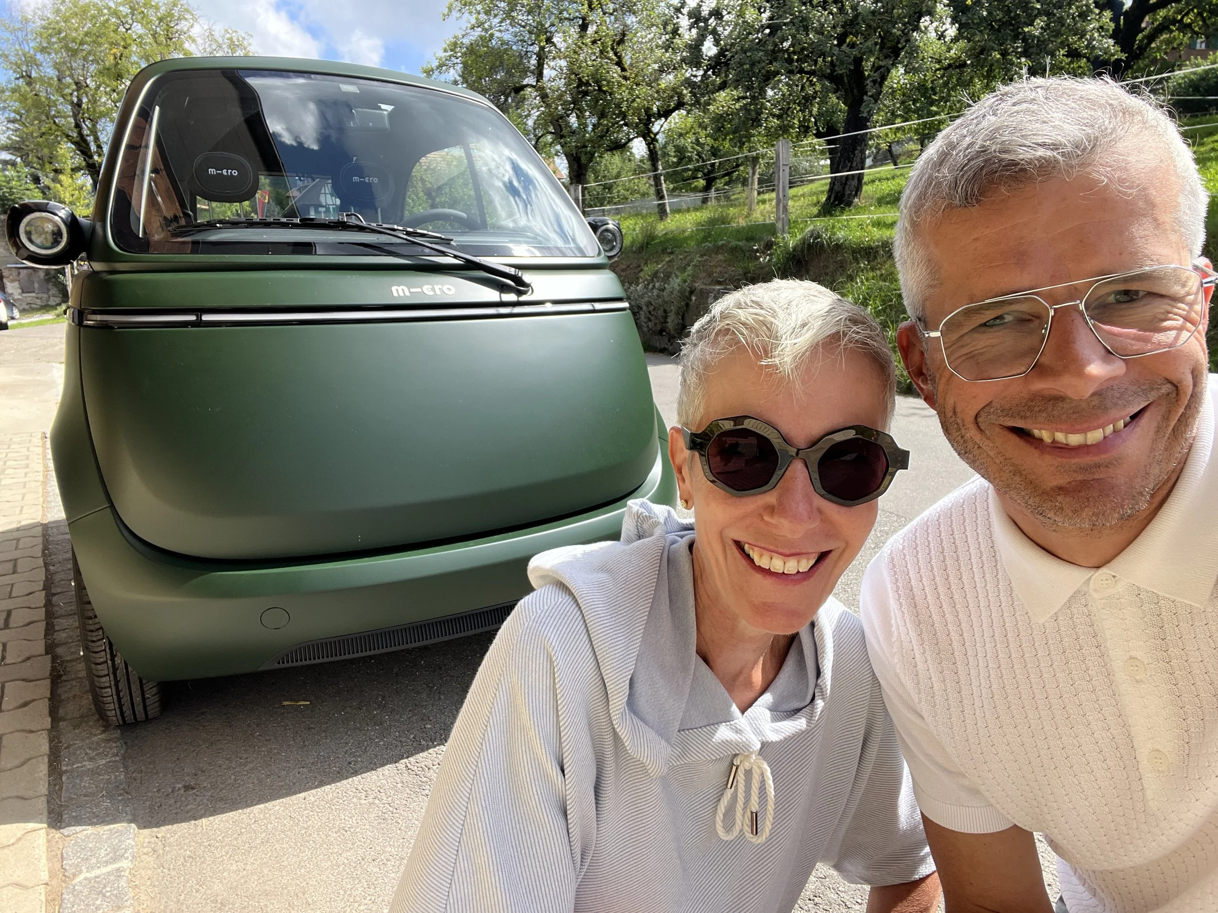 Uns war das recht. Wir durften unbeobachtet den Microlino entdecken – ein Gefährt, das vor allem durch seinen Humor besticht. Wer ihn fährt, wird angeschaut. Wer ihm begegnet, beginnt zu lächeln. Ein rollender Eiswürfel mit Augenzwinkern.
